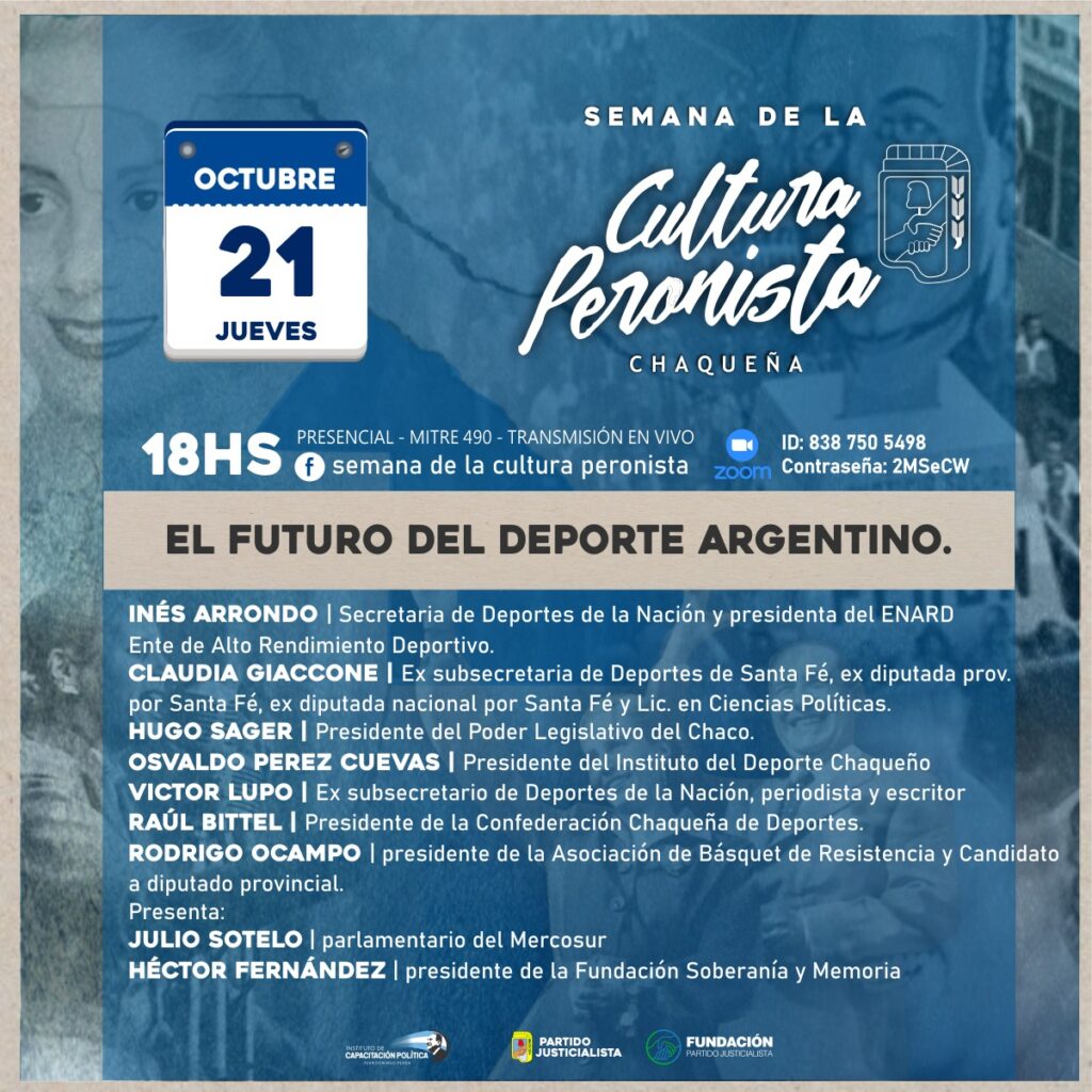 En la sexta Semana de la Cultura Peronista, organizada por el Instituto de Capacitación Política Juan Domingo Perón, presidido por el diputado argentino del Parlasur y miembro permanente del Partido Justicialista (PJ), Julio Sotelo, tuvo un importante debate sobre políticas deportivas.